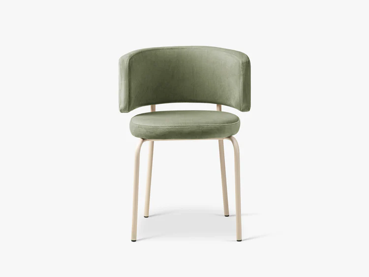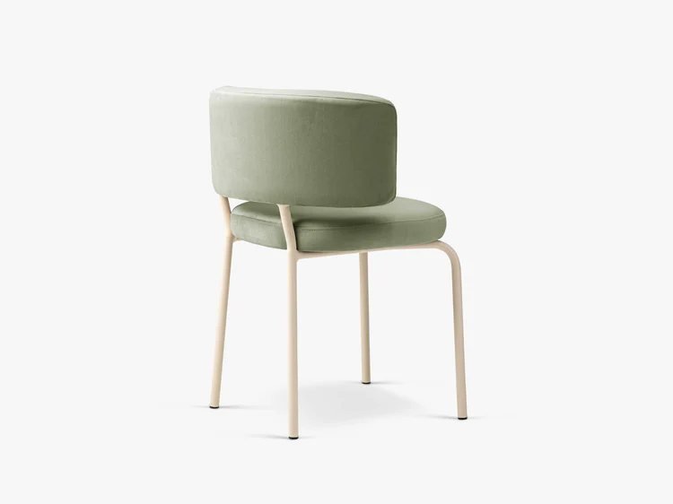 Tapecirana stolica Dora pruža pouzdanu udobnost za blagovaonice ili urede. Opremljena je kvalitetnom pjenom za dodatnu potporu te čvrstim crnim metalnim nogama.