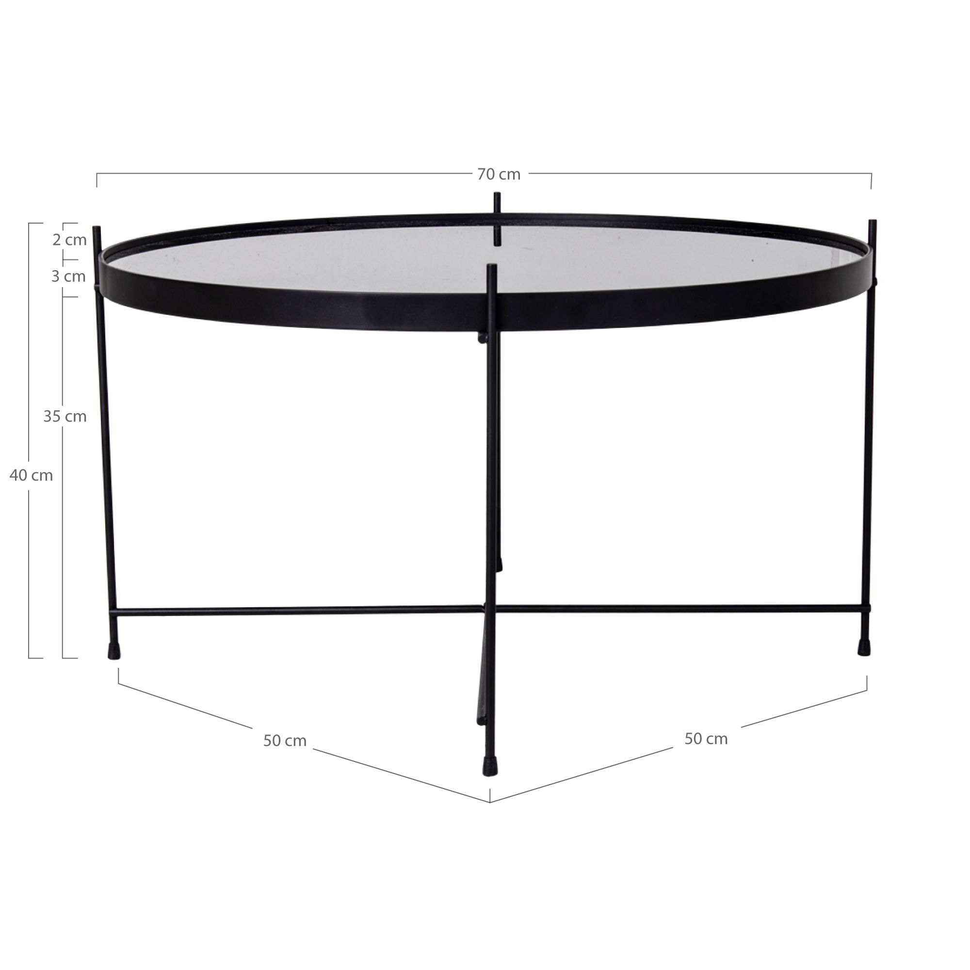 Klub stolić, crni čelik s praškastim premazom sa staklom, ¸70xv40 cm